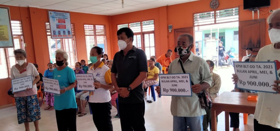NIAS - Kepala desa Lasara Idanoi', Yarman Zebua menyalurkan Bantuan Langsung Tunai ( BLT ) Dana Desa Tahap pertama bulan ,April, Mei, Juni, tahun 2021, kepada 110 kepala keluarga di Balai Desa Lasara Idanoi', Sabtu (11/9/2021)